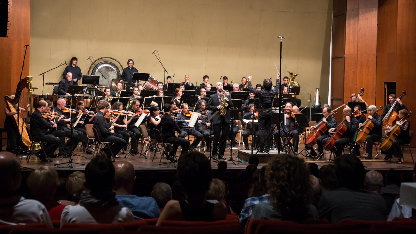 Tampere Filharmonian konsertti Tampere-talossa klo 19. Richard Straussin Sinfonia Domestica -teoksessa soittamassa kolmen muun saksofonistin kanssa.